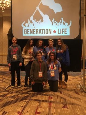 Seven 8th graders, six high school students, and five adults represented St. Justin at the March for Life to show that we believe all human life is sacred from conception to natural death.