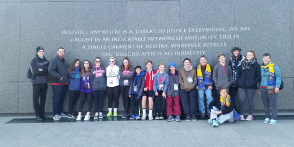 Seven 8th graders, six high school students, and five adults represented St. Justin at the March for Life to show that we believe all human life is sacred from conception to natural death.