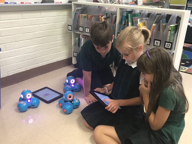 Dr. O’Connell’s third graders learn coding skills with the Dash and Dot Robots.