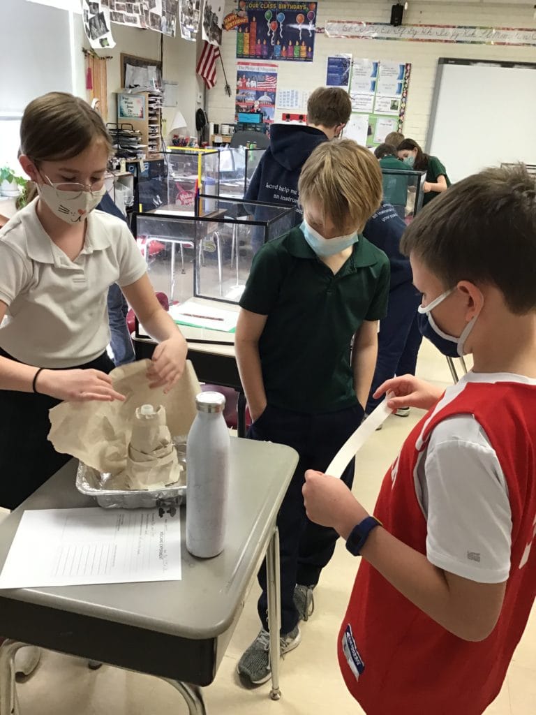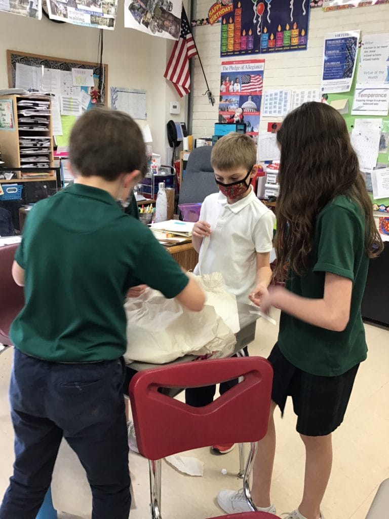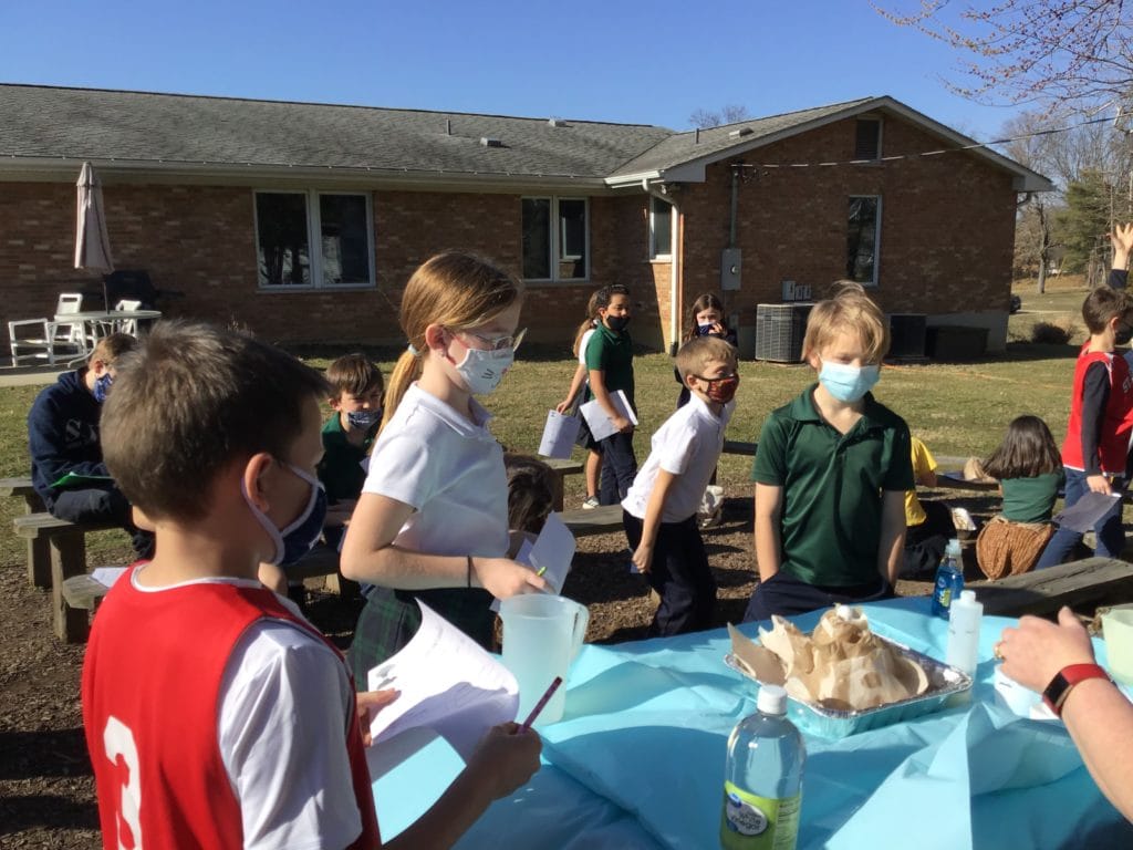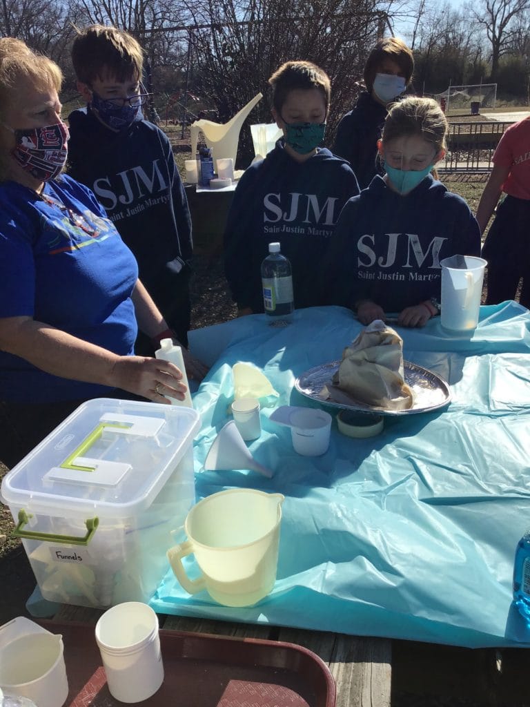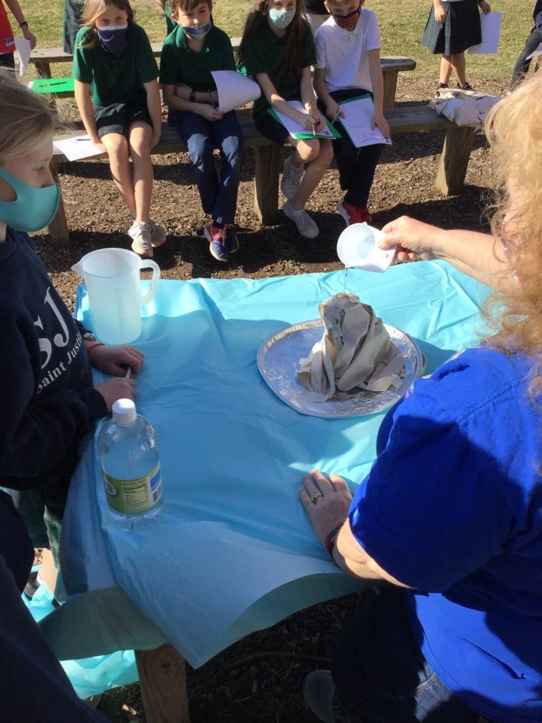 Recently, our fourth graders researched and constructed volcanoes and then went outside to watch them erupt! Hands-on learning is a key element in St. Justin’s educational approach.