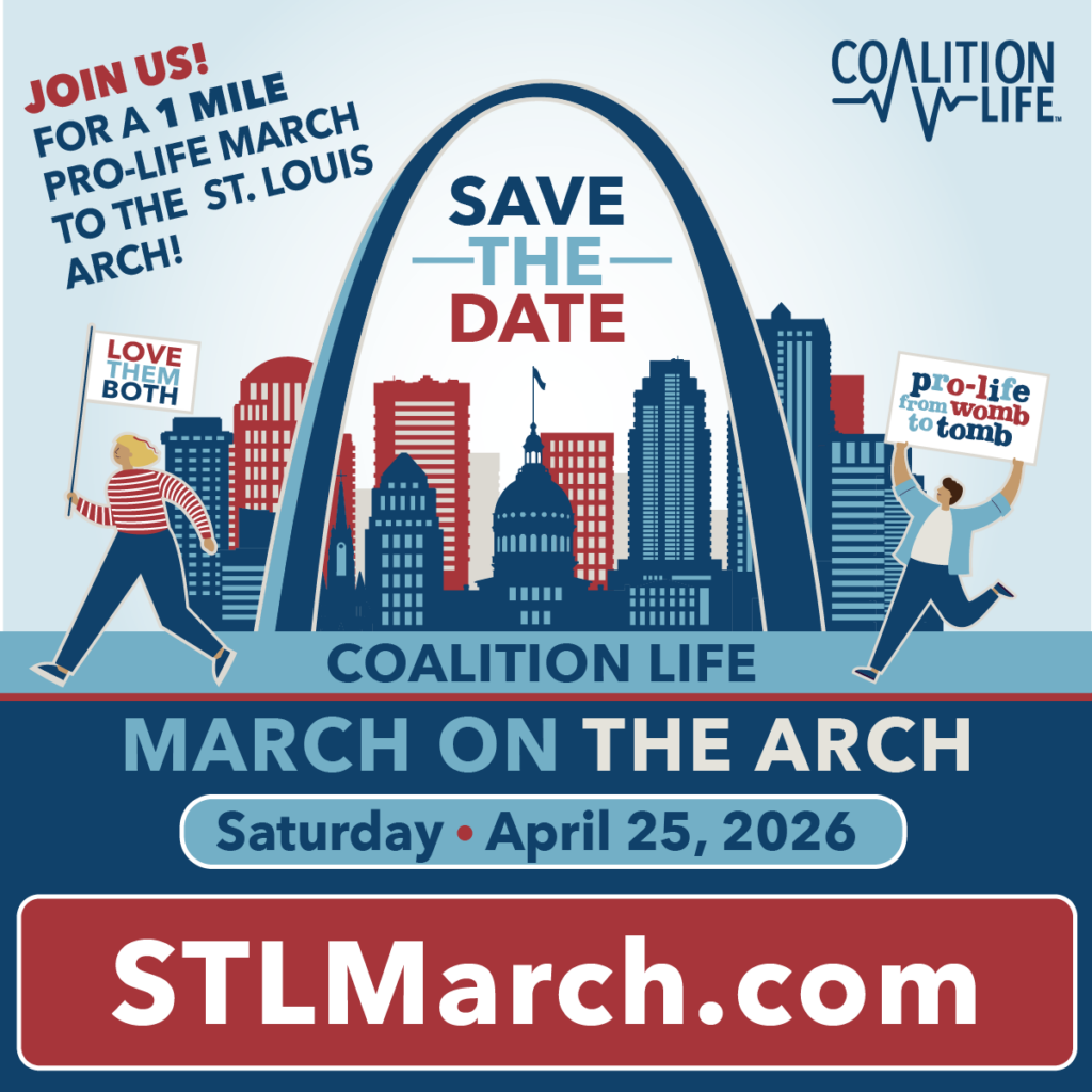 Coalition Life is hosting the ninth annual March On The Arch on Saturday, April 25, 2026, in downtown St. Louis. This peaceful, public witness brings together thousands of people who want to stand up for the dignity of every human life. With ongoing efforts in Missouri and across the region to expand abortion, this march is a chance to stand united and be seen and heard.